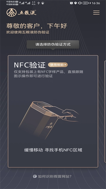 对带有NFC标签的五粮液产品,进行真假便别