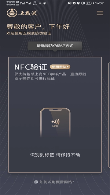 请注意:当下仅支持NFC功能的智能手机,方可使用新一代NFC防伪查询功能。