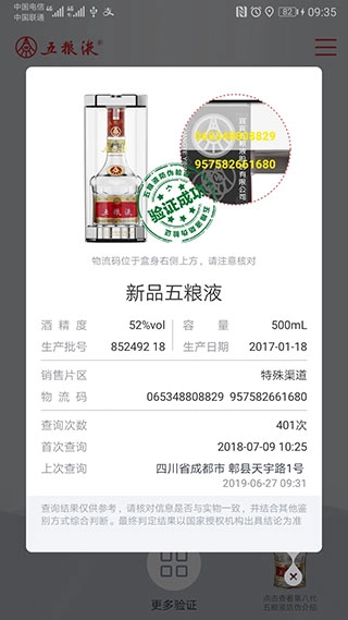 我们提供便捷、快速、准确且可靠的防伪查询服务,您只需拿出手机,即可轻松查验五粮液的真伪。