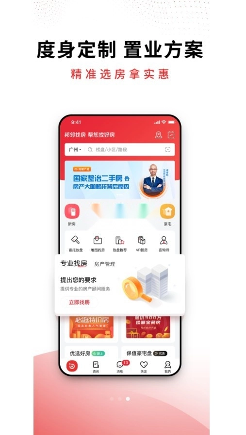 合富辉煌集团打造的一站式购房服务平台《邦邻找房》,致力于为购房者提供贴合市场的实时动态资讯,第一时间推送可售房源及对应的优惠信息,同时覆盖房屋买卖、置换等交易全流程的相关服务。