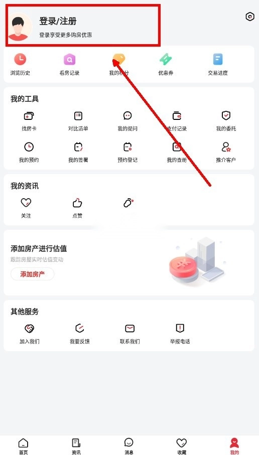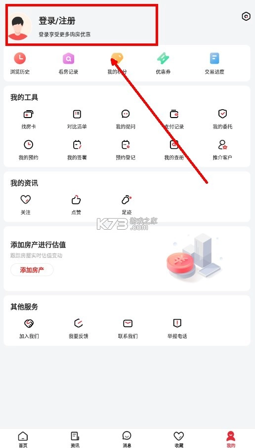 找到界面右下角的“我的”按钮并点击,接着点击左上角的“登录/注册”按钮即可。