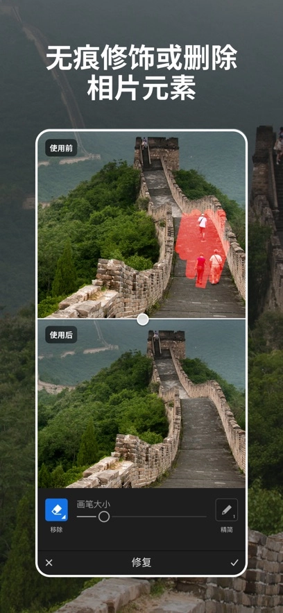 - 使用改进的生成式移除功能美化照片的边缘