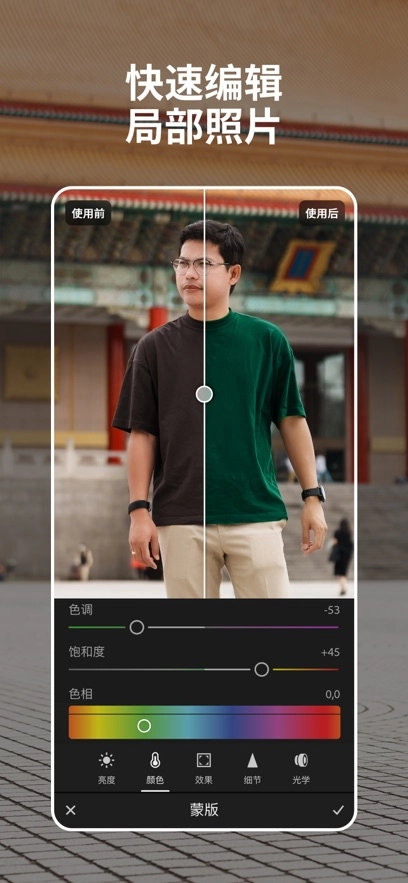 - 使用新的蒙版类型“选择背景”进行选择性编辑