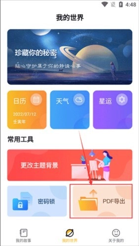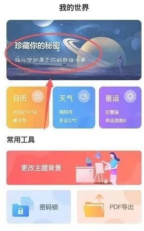 在我的世界页面上方点开珍藏温冲你的秘密。