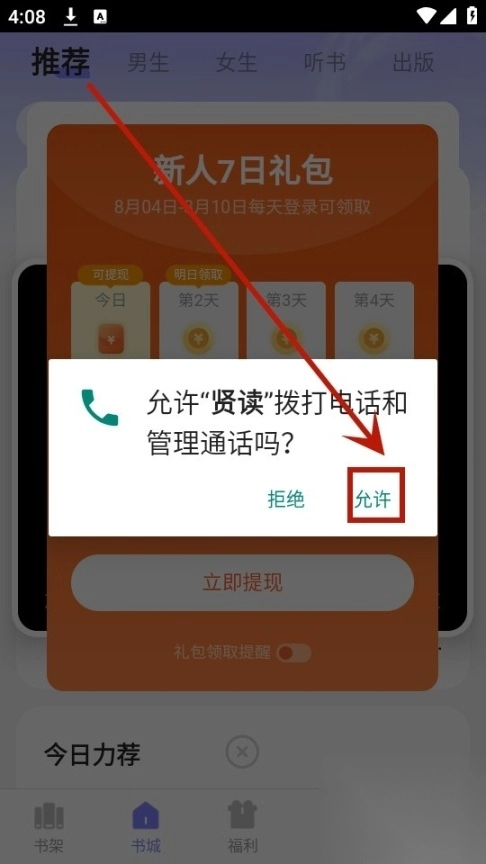 安装并打开贤读小说,进入首页之后点击你感兴趣的小说