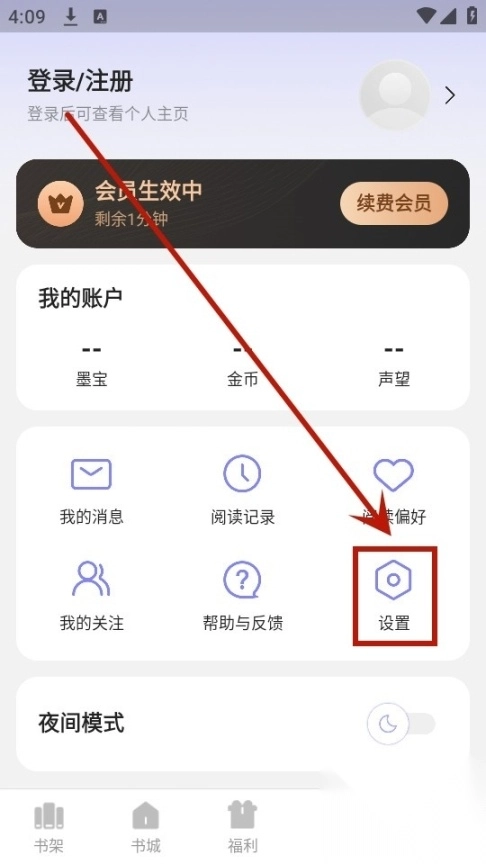 为了能让用户晚上阅读时能更加舒适,可使用软件自带的夜间阅读模式,自动调节成与环境合适的亮度。