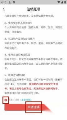 勾选重要提醒,点击【申请注销】