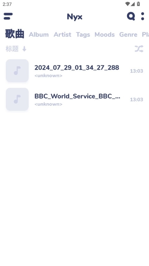 Nyx音乐播放器绝对是一款功能完备、设计新潮的音乐播放应用。它兼容多种音乐与音频格式,配备了强劲的音频均衡器和丰富的播放模式,能让你尽情畅享音乐。此外,它还提供了多样的音乐可视化效果和易用的标签编辑功能,让你的音乐体验更具个性且操作便捷。不管是运动时听音乐、设置睡眠定时,还是使用独特的音乐循环功能,Nyx都能满足你的各类需求。