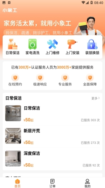 300万+经过认证的服务人员在线接单,随叫随到,确保您的需求能得到及时满足。