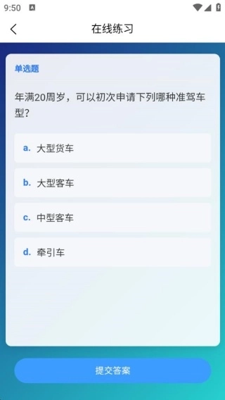 3、点击在线练习,有各种选择题去选择学习的。
