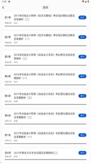 2、扩充章节练习内容,紧密围绕会计知识核心要点,各章节均精心设计题目,遵循由浅入深的逻辑,助力你筑牢知识根基,逐步提升专业能力与素养。