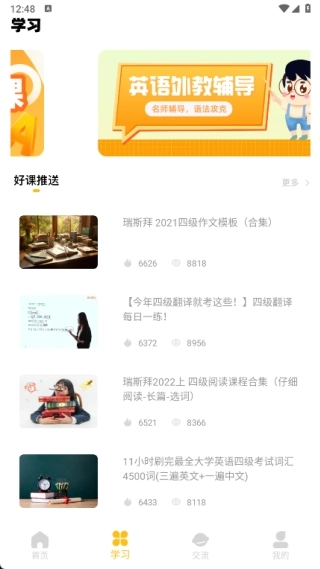 2、在四六级课程页面里,用户能够了解各类课程,并从中挑选适合自己的进行学习。