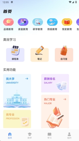 1、首页设有各类教育资源,以及高效学习、实用工具两大版块。