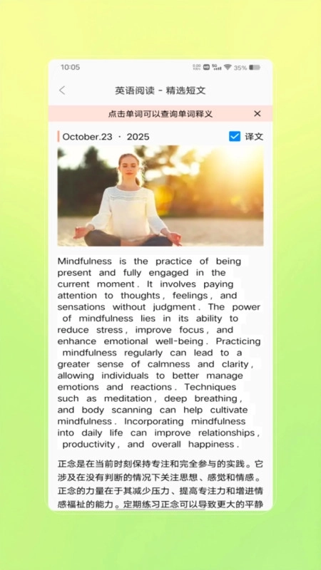 英语宝贝是一款非常出色的在线教育软件,平台上的网课视频资源特别丰富,而且都是免费分享的。你可以根据自己的学习需求,挑选适合的网课内容来学习,这样就能轻松地积累知识了。另外,它还具备强大的免费翻译功能,不管是识别短语还是句子都很在行,翻译结果也十分精准,你完全可以放心在这个平台上进行翻译操作。
