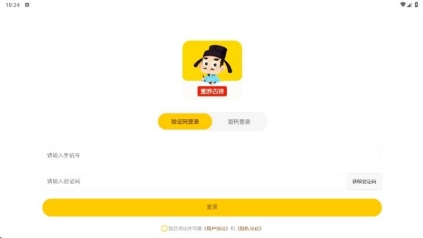 1、完成安装并进入应用后,在登录界面输入验证码或密码就能正常使用了。