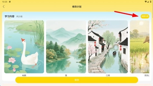 2、背古诗页面展示了学习计划功能,点击修改即可。