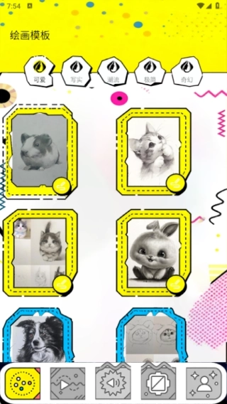 1、绘画模板里涵盖了可爱、写实、潮流、极简、奇幻等多种不同类别的模板;