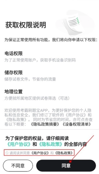 1、打开应用后同意相关权限协议进入登录界面。