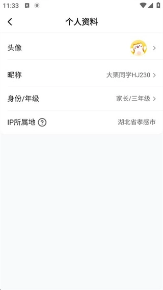2、在个人资料页面选择身份或年级修改选项。