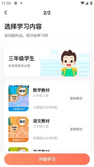 4、更换年级后选择配套教材即可开始学习。