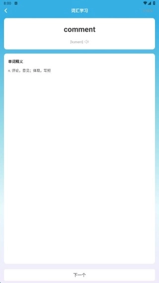 4、我们确定好计划就可以启动学习了,只需一键就能查看每个单词的词义,遇到不认识的可以手动添加到生词本,这样能方便大家巩固记忆。