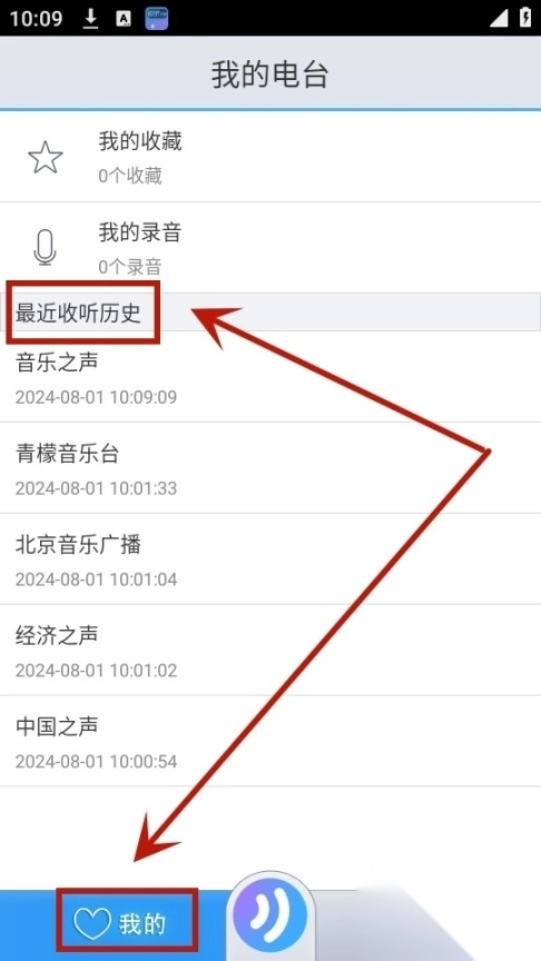 你过往听过的电台节目,会在收听历史记录里完整保留下来。