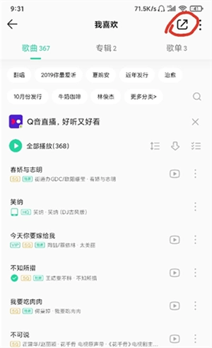 打开QQ音乐应用,进入“我喜欢的列表”,点击右上角的分享按钮。