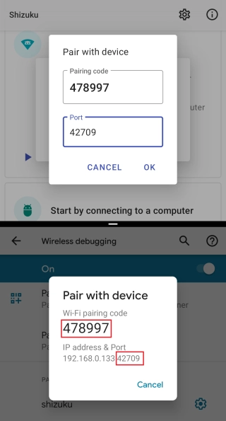 请务必开启系统的分屏或多窗口功能(一旦退出“无线调试”界面,配对就会中断)