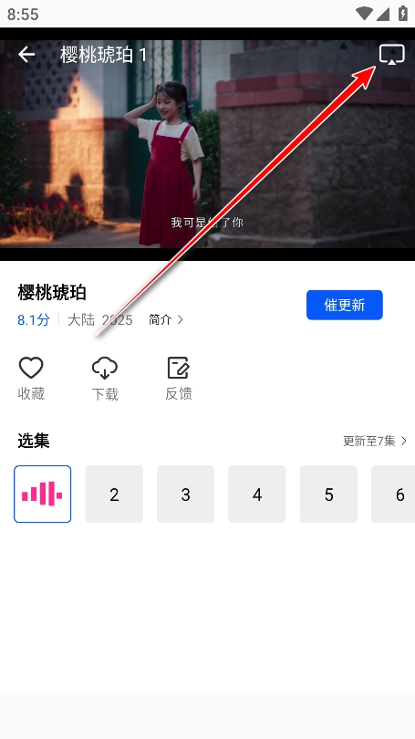 点击右上角的投屏图标。