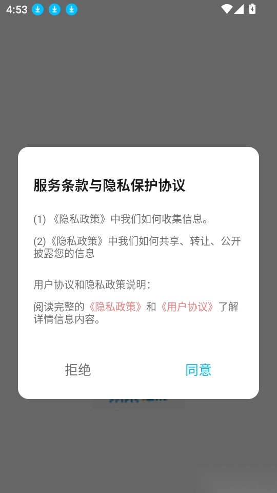 首先打开应用点击“同意”按钮进入中。