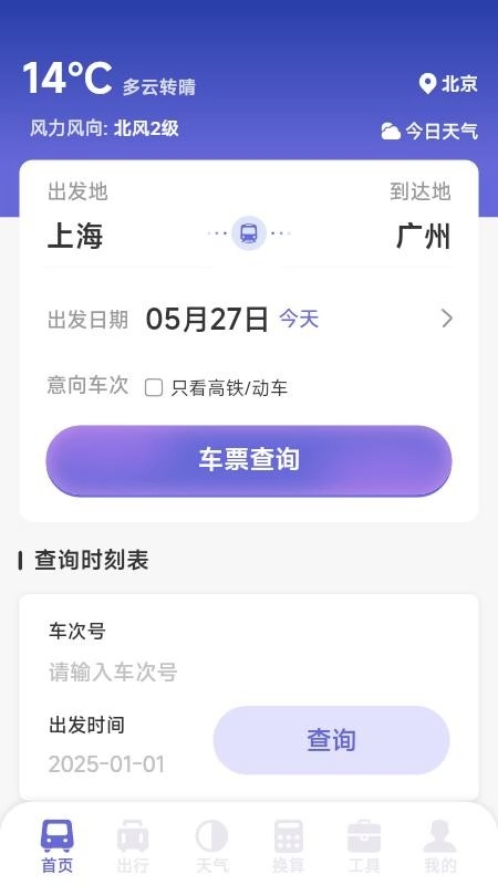 铁路火车高铁查票这是一款拥有便利高铁票务信息精准查询功能服务的应用软件,在这里能够帮助用户快速查询国内所有的高铁动车票务信息,详情掌握高铁票务班次、费用、时间、时刻表等信息,帮助大家轻松购买需要的高铁票务乘坐和出行;而且该软件提供的票务数据都是与实时同步,轻松获取真实的高铁票务信息查询兴趣;除此之外,在铁路火车高铁查票软件当中还拥有不错天气工具、单位换算、景点攻略等小工具资源;喜欢这款程序软件的用户朋友们可以来本站直接体验一番。