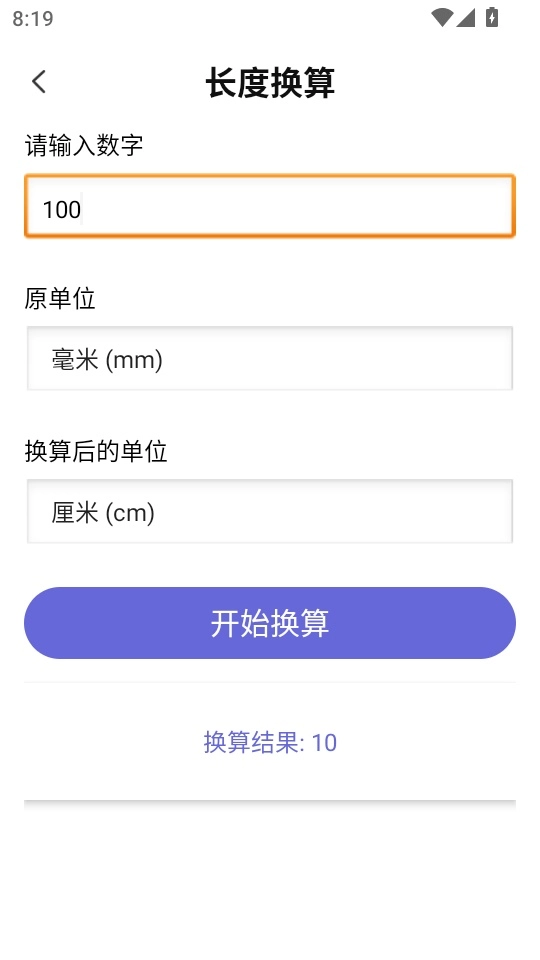 之大家输入数字后,点击“开始换算”就完成长度单位的换算了