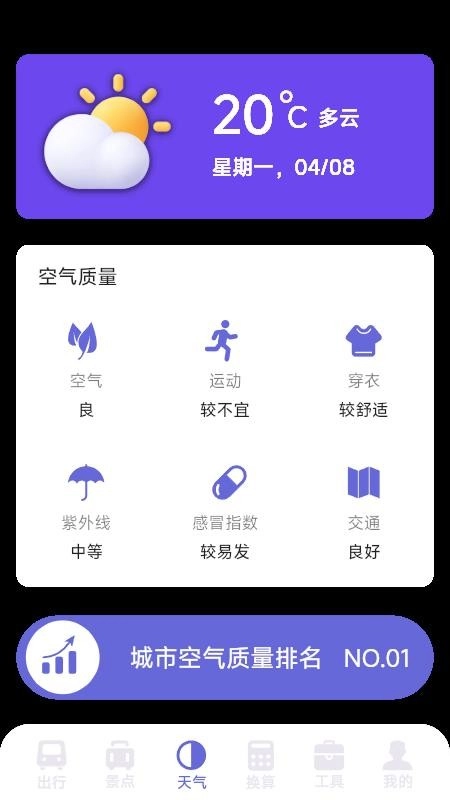 带来不错天气预报系统,可以获取城市空气质量排行;