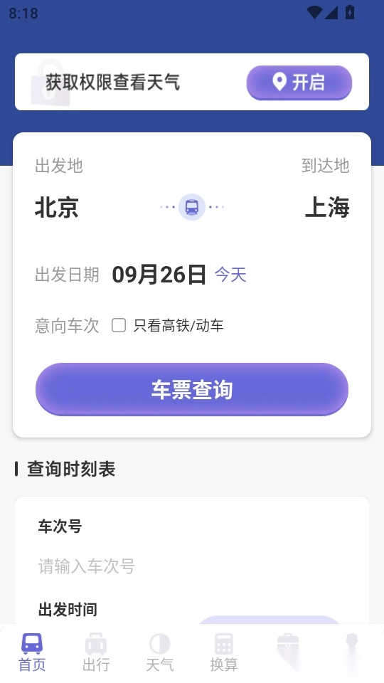 可查询火车票的车次、余票和票价,输入相关信息,所需车票详情即刻呈现,方便又快捷。