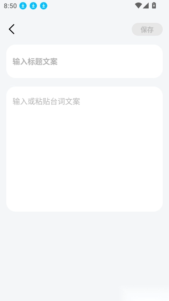 然后输入标题文案和台词文案内容,点击右上方的“保存”按钮就可一键保存下来。