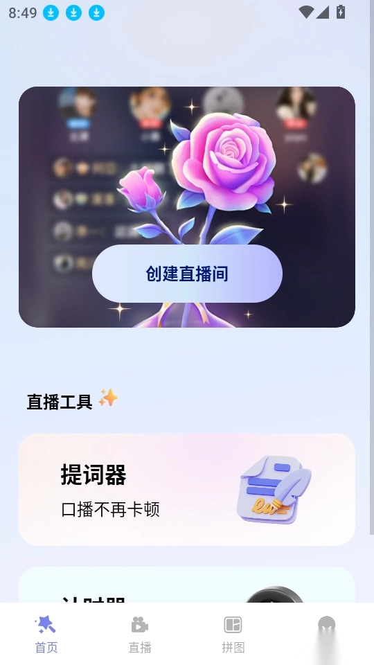 贴心的直播助手可以帮助用户轻松打造自己的直播间,轻松开播。