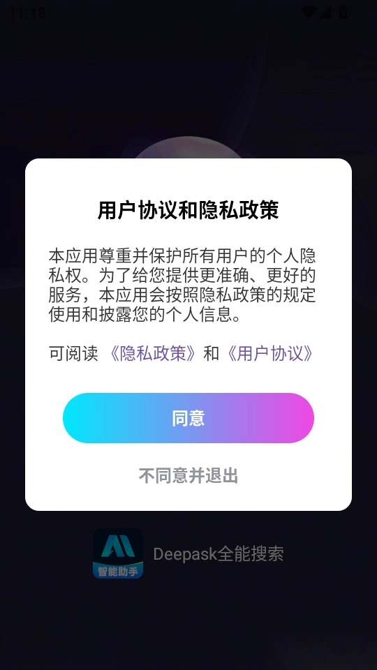 首先打开软件,阅读协议与隐私政策后,点击“同意”按钮即可进入