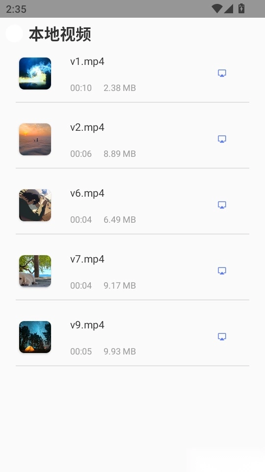 之后大家选择视频文件右边的“投屏”图标按钮点击进入