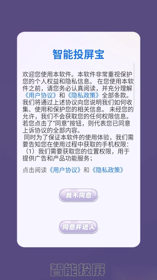 智能投屏宝手机版这是一款拥有专业智能手机投屏播放功能服务的应用软件,在这里能够轻松将手机屏幕内容高清投射到大屏幕当中,能够实现极低延迟的投屏播放显示,各种音乐投屏、视频投屏、照片投屏、智能投屏等操作都可满足,而且软件平台操作步骤十分简单,详情的操作流程使用说明,能够帮助用户快速的上手使用;除此之外,在智能投屏宝软件当中设备投屏画面都是非常流畅稳定,在投屏过程中数据都是加密处理,保障用户投屏播放的安全性;喜欢这个软件的小伙伴们可以来本站直接体验哦!