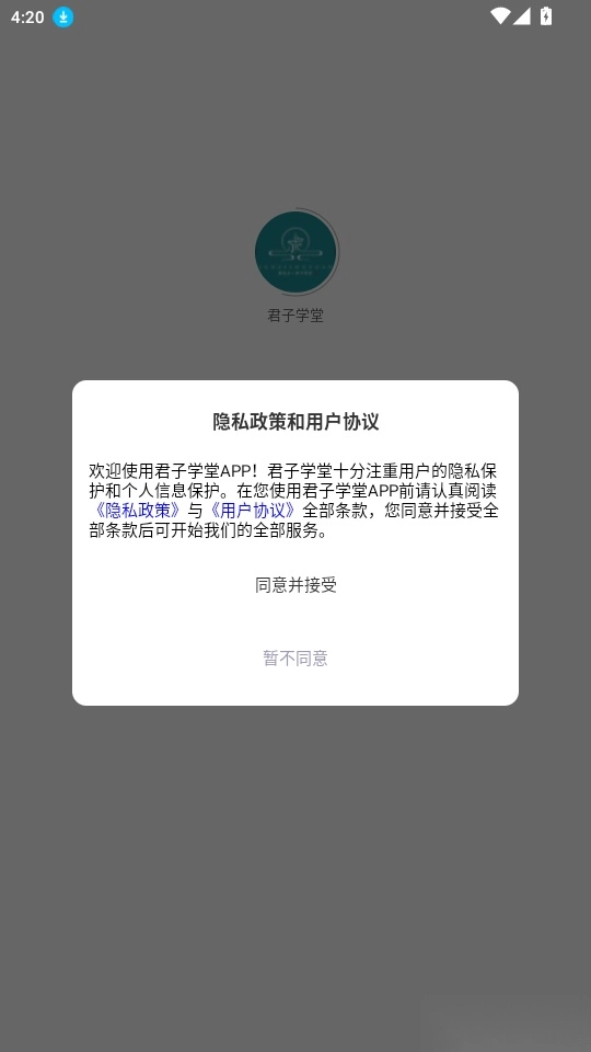 打开软件阅读“隐私政策和用户协议”点击“同意并接受”进入