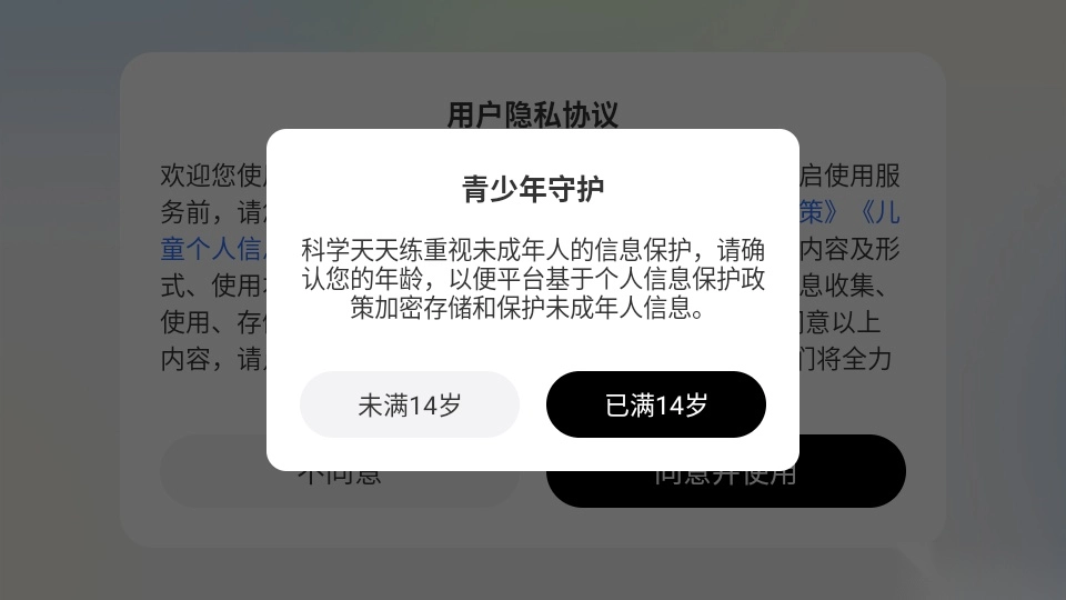 然后会出现“青少年守护”弹窗提示,点击对应年龄后进入下一步