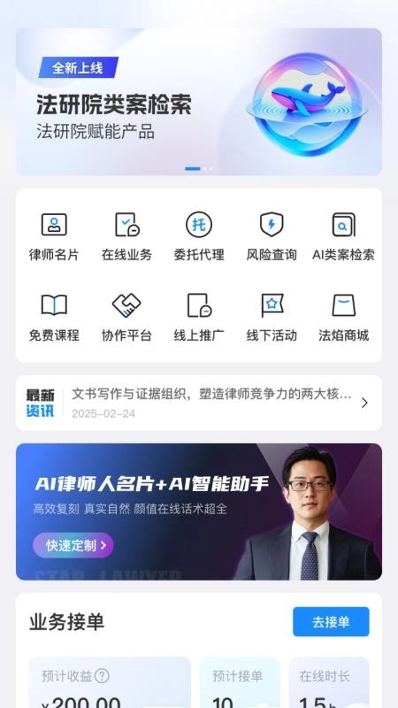 让律师可以在线获取相关的业务,这样就能够快速的掌握更多的业务信息了;