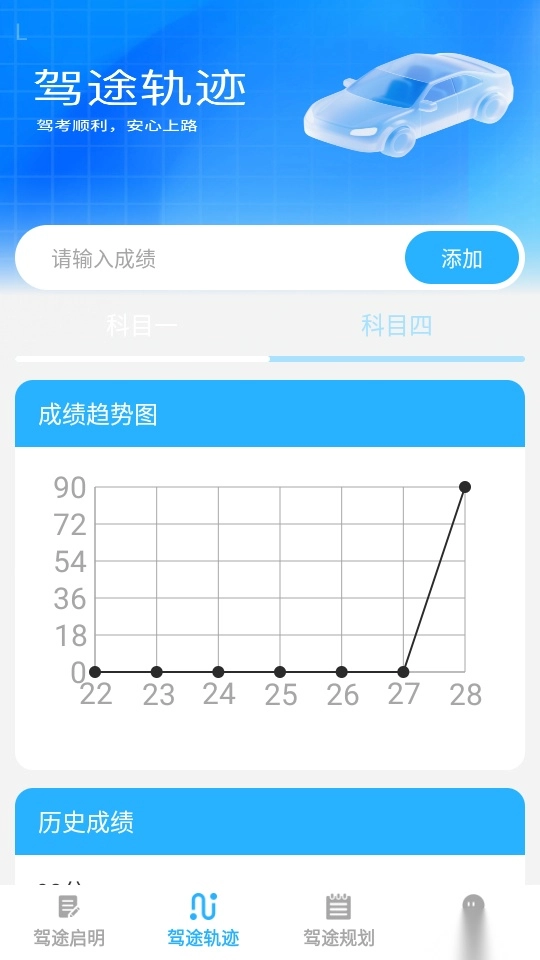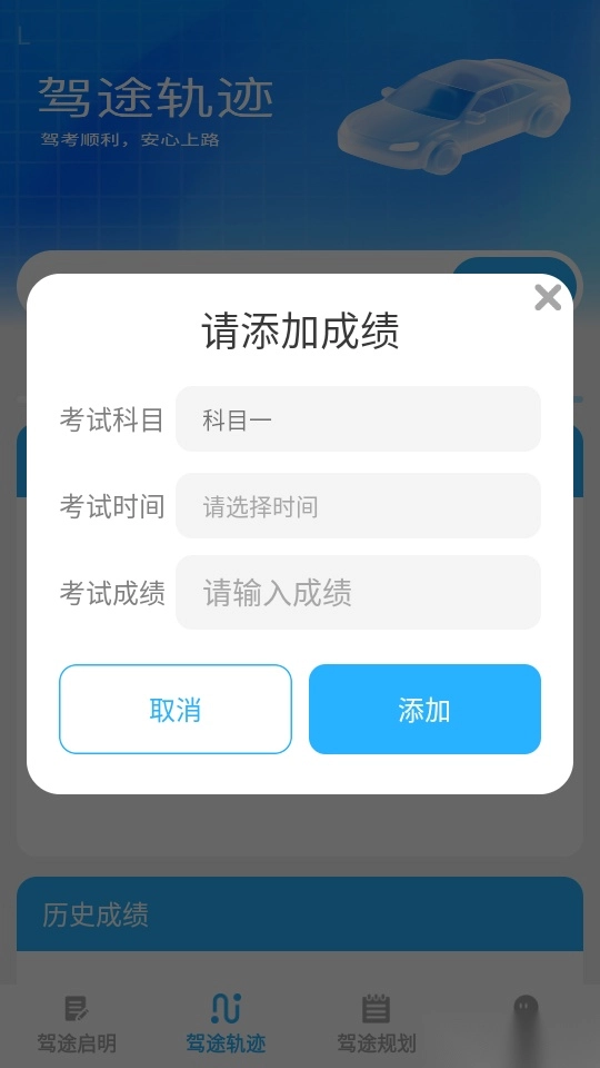 可以对自己的每一次考试成绩记录下来,轻松添加驾考成绩,以此来回顾自己的学习。