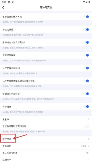 3、进入设置页面后,点击“隐私与安全”选项,从中找到修改密码的功能入口。