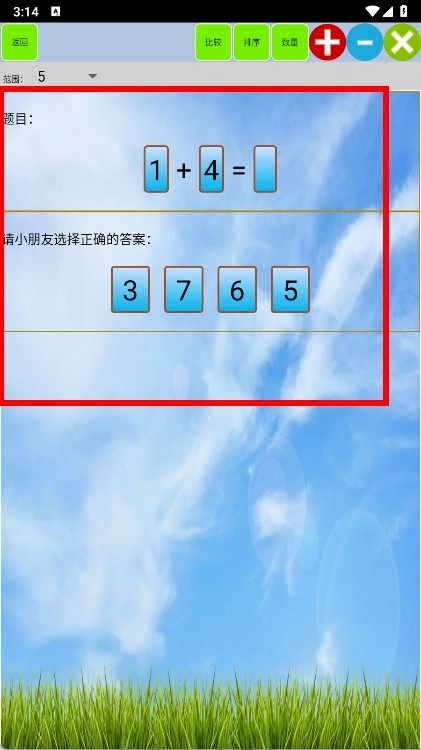 2、进入算术题目的页面后,会出现加法类题目,页面下方设有多个答案选项,需从中选择正确的答案。