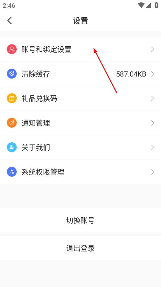 3、进入设置页面后,找到并点击“账号和绑定设置”选项,即可进入对应的账号与绑定设置页面。