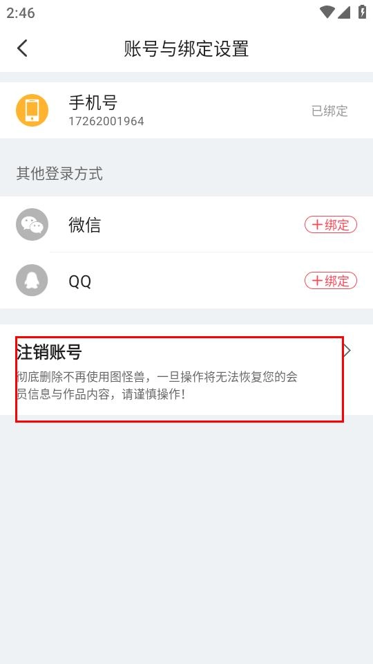 在账号与绑定设置页面中,能找到注销账号的选项,点击该选项即可完成账号注销的操作。