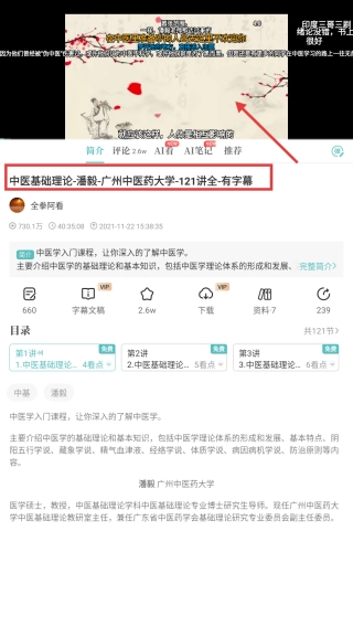在课程详情页,开始学习中医基础理论课程内容。