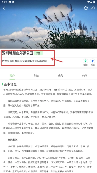 可以在详情页了解深圳塘朗山郊野公园的基础信息、特色景点等相关内容。