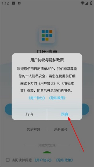 在用户协议和隐私政策的弹窗里,点击“同意”按钮,即可进入登录页面。